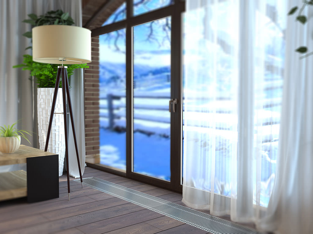 Τα οικονομικά ενδοδαπέδια κανάλια - Trench Heating - χρησιμοποιούνται ως κύρια πηγή θέρμανσης του χώρου και ως ένα αποτελεσματικό φράγμα αέρα μπροστά από μεγάλους υαλοπίνακες ενώ ταυτόχρονα εξαλείφει τα συμπυκνώματα υγρασίας από αυτούς.