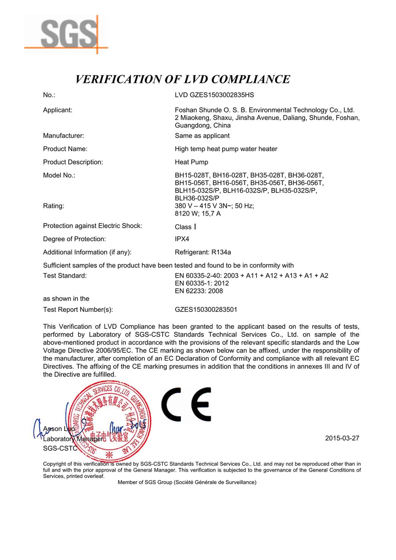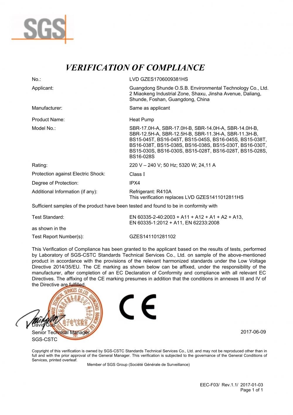 Οι αντλίες θερμότητας για θέρμανση πισίνας ECOplus είναι πιστοποιημένες με ISO και φέρουν σήμανση CE που πιστοποιεί ότι συμμορφώνεται με τις απαιτήσεις νομιμότητας της Ευρωπαϊκής Ένωσης. Την ευθύνη της συμμόρφωσης του προϊόντος και επομένως της σήμανσης CE έχει ο κατασκευαστής.