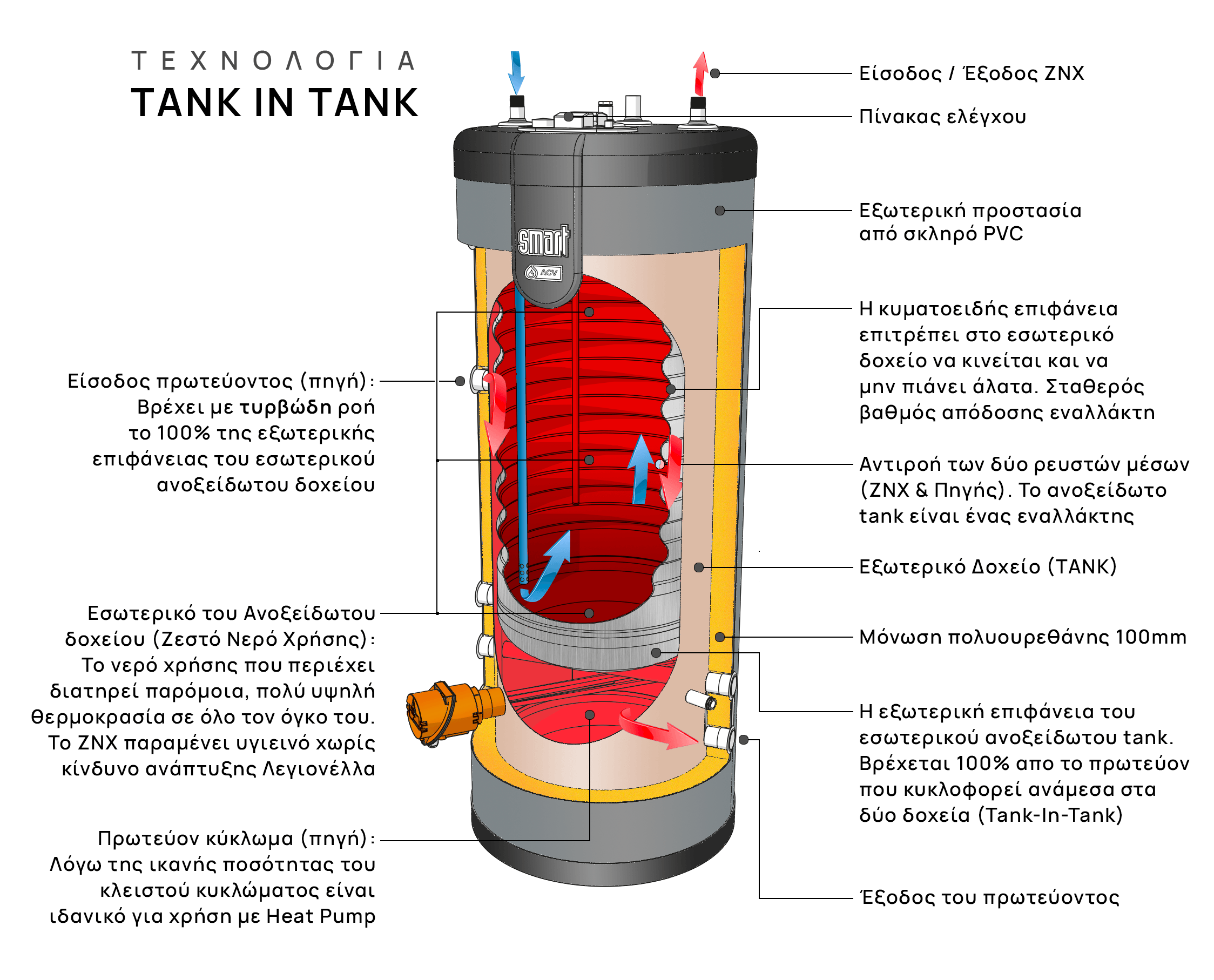 Tank In Tank είναι σύστημα παραγωγής ΖΝΧ που συνδυάζει ανοξείδωτο εναλλάκτη και αποθήκη, ώστε να καλύπτει αιχμές ζήτησης με σταθερή απόδοση και υψηλή αξιοπιστία.